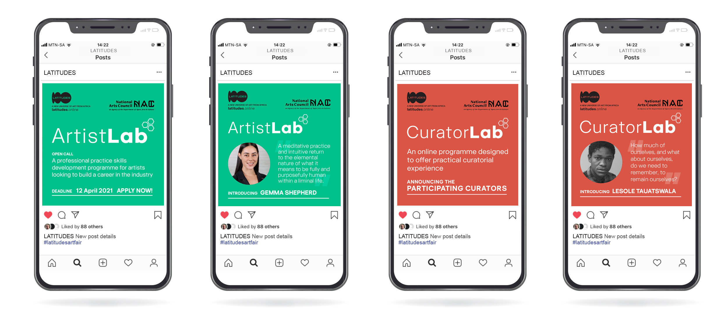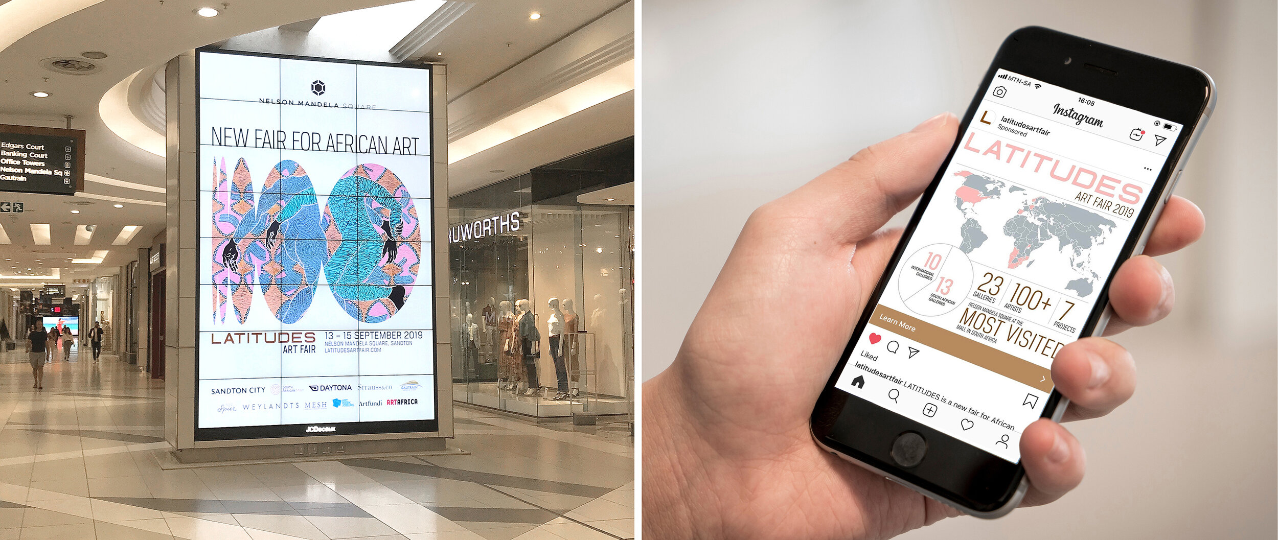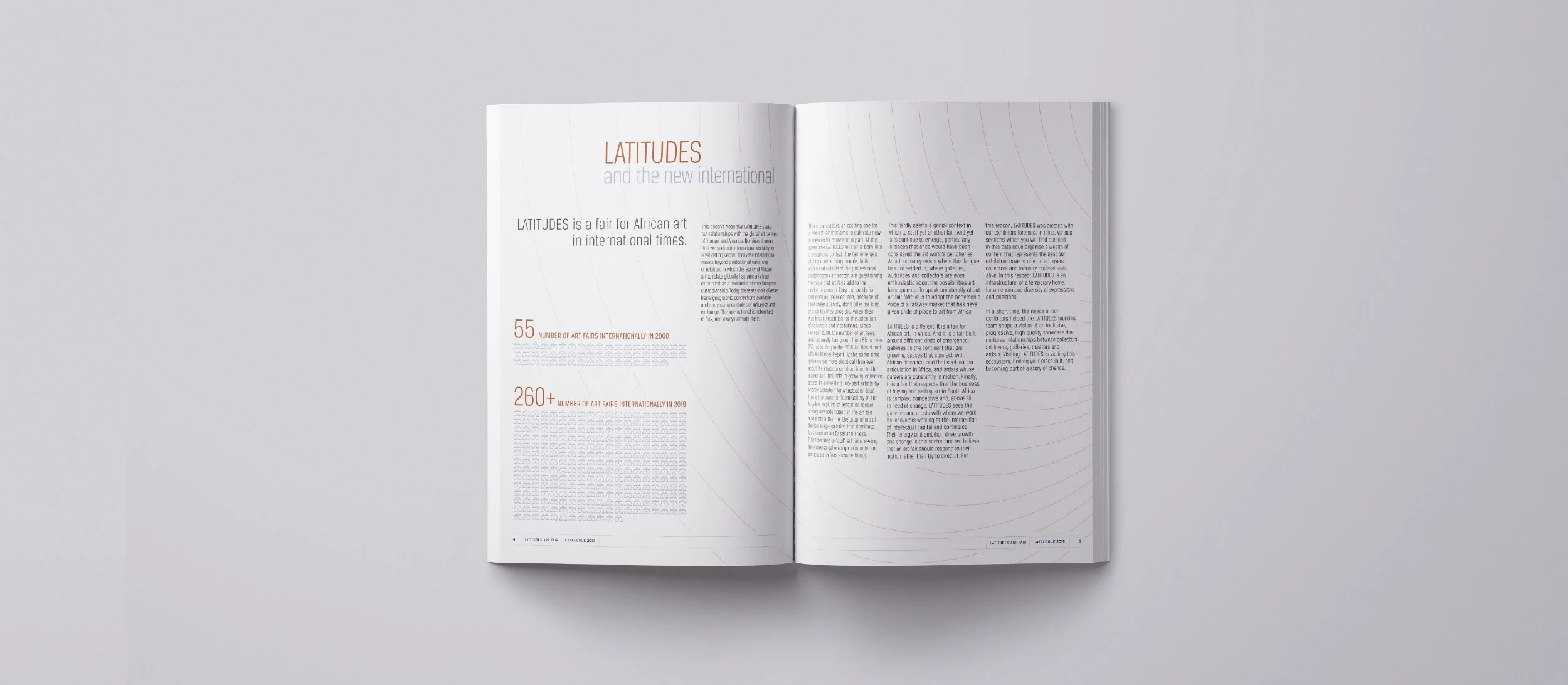 Extended corporate identity design, OOH marketing collateral, social media campaigns and extensive editorial design for contemporary art fair – LATITUDES.online